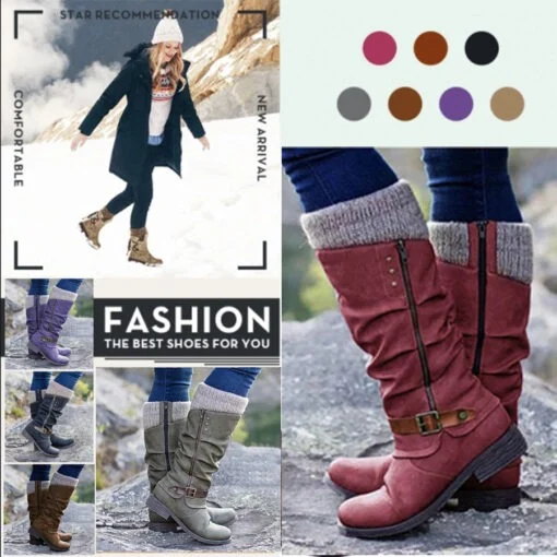 Crafted with waterproof, durable PU leather, these boots shield you from rain and snow while keeping feet dry and cozy. The mid-calf design features a plush wool lining for warmth without sacrificing style.